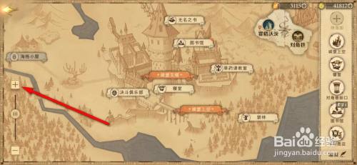 点击“+”放大地图,再点击前去“霍格沃茨会堂”。