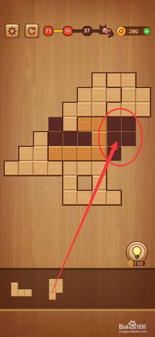 第一步,打开方块拼图LV.36小恐龙,把下面第三块拼图放到恐龙脚上