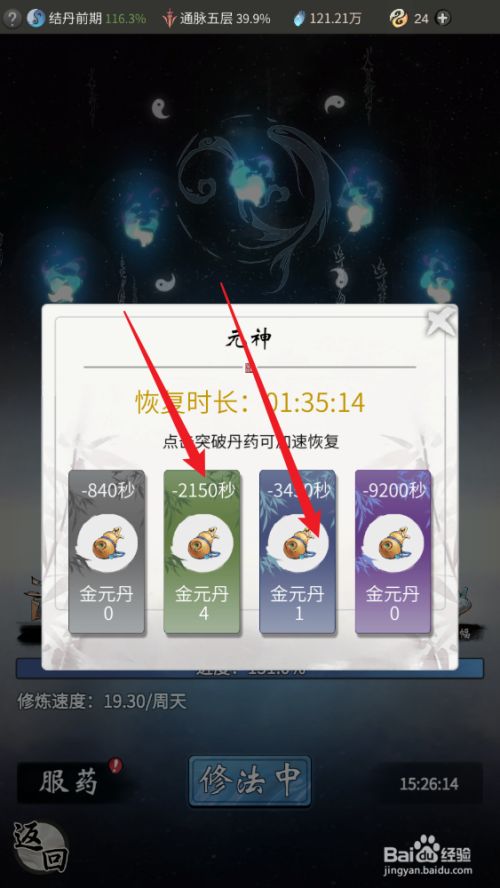 工具/原料小米Mi10MIUI12.0一念逍遥2.4.8方式/步骤1打开一念逍遥游戏2在游戏中点击游戏画面下方的洞府字样3在洞府中点击丹房4炼制一枚金元丹5接着返回修法6点击受损元神7服用金元丹这样就可以了END
