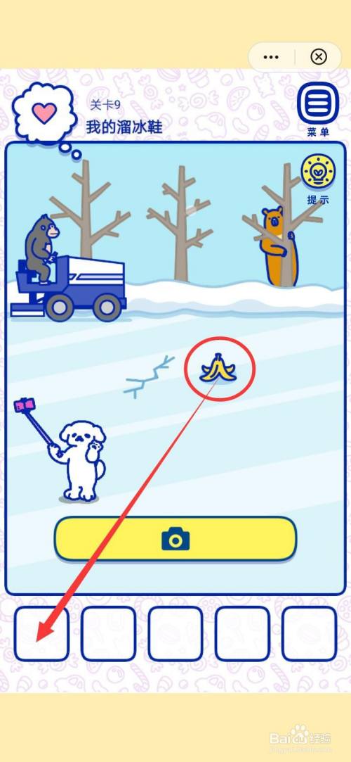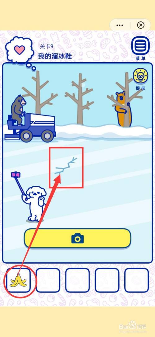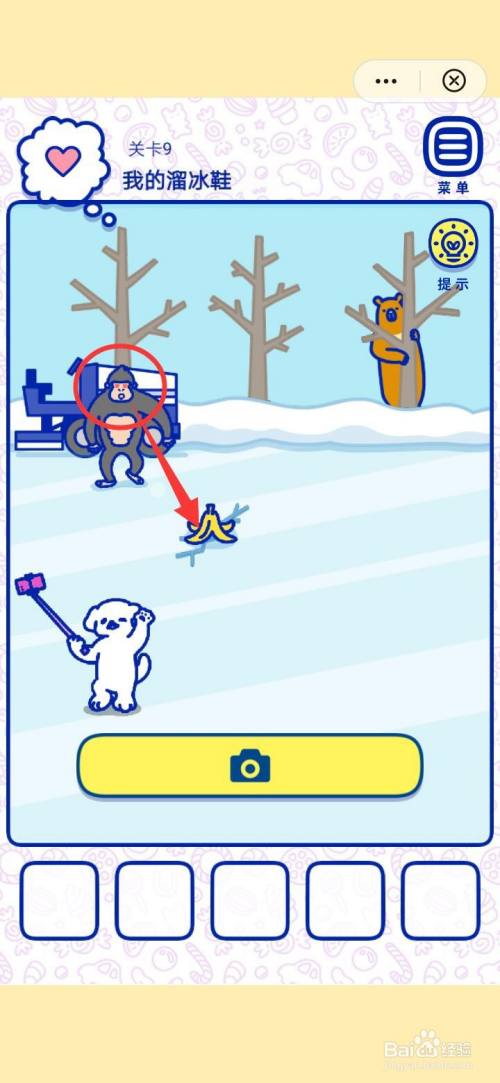 又将萌犬糖果的心愿9我的滑冰鞋的喷鼻蕉皮放到冰上裂痕中,引起大猩猩注重