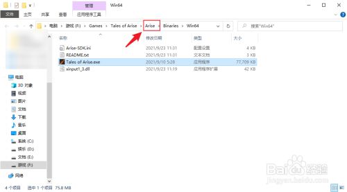 进入文件办理器页面后,点击顶部地址栏中的Arise,如图所示: