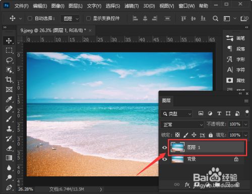 接着,我们按下【CTRL+J】把图片复制一份出来。