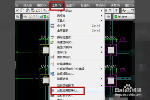 在cad图纸页面内找到并点击画图栏中的“东西”选项,然后点击“加载应该程序”选项;