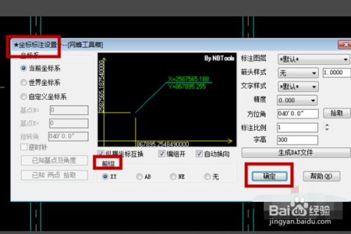 在弹出的”坐标标注“设置对话框查对好它的属性,然后点击”确定选项;
