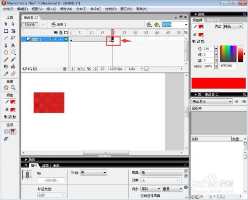2、点击矩形,在第1帧绘制矩形;