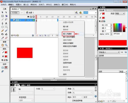3、在第20帧按右键,点击插入关头帧,建立正方形;