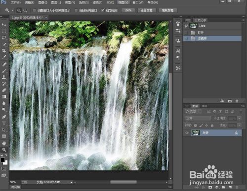 这样,我们就在photoshop cc中给图片添加上了暗影线结果;
