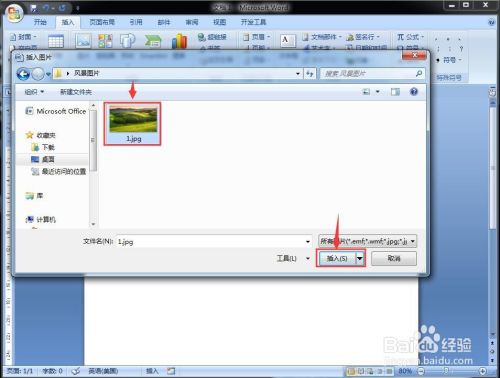 2、选中备好的图片文件,按打开,将它添加到word中;