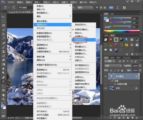 点击图层,选择图层样式下的斜面和浮雕;