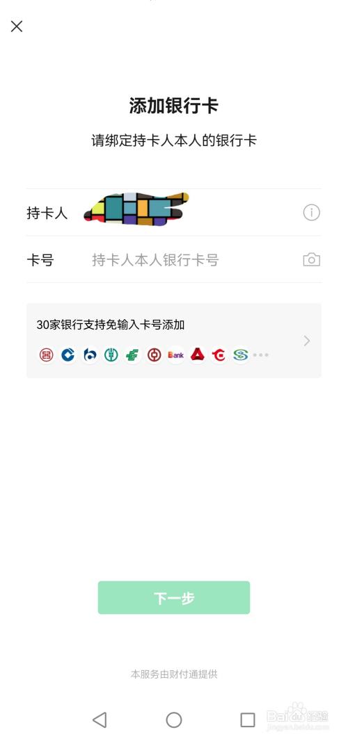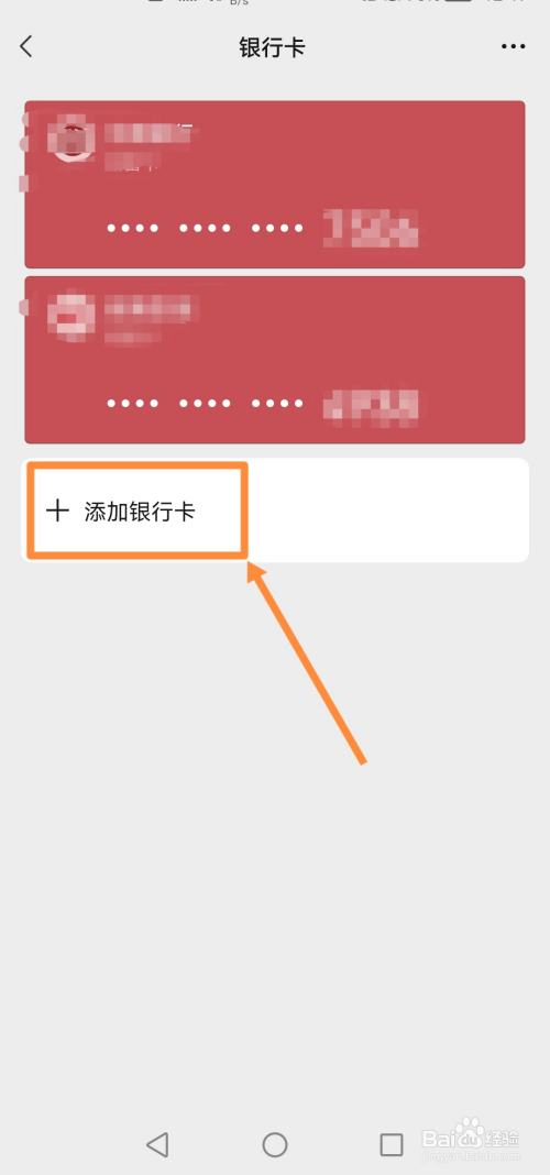 第四步:进入“银行卡“页面后,并点击下面的”添加银行卡“。