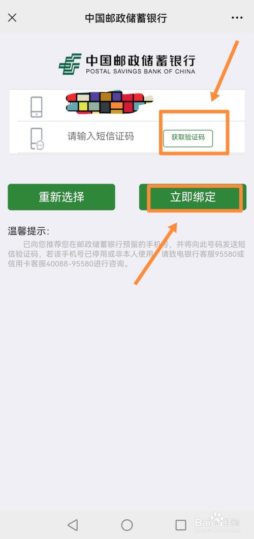 第九步:点击”进去“页面后,把您即将绑定的银行卡选中,并点击”确定“,然后点击”获取验证码“,并把验证码输入进去后,最后并点击”当即绑定“,那么绑定银行卡的使命就完当作了。