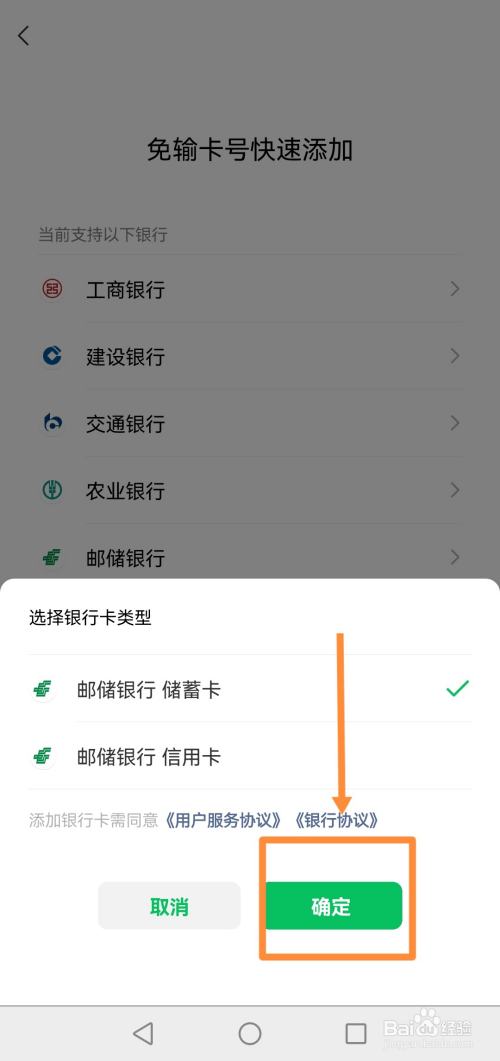 第六步:选择您说添加的银行卡类型,并点击确定。