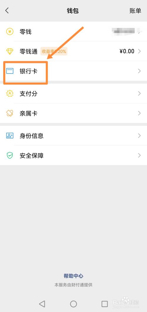 第三步:进入“钱包”页面后,并点击“银行卡”。