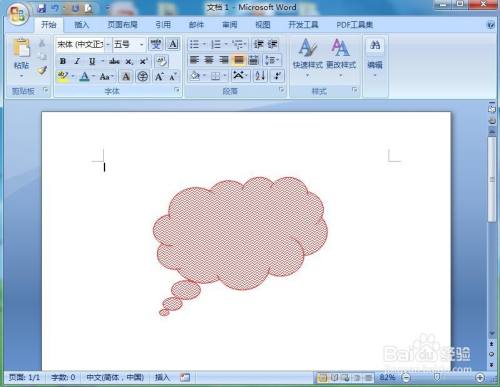 按下鼠标左键不放,拖动鼠标,画出一个云形标注;