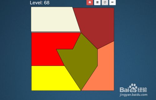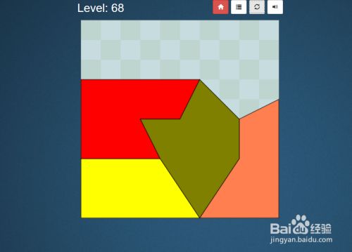 最后在暗红色图形的左侧,放上米黄色图形挨着,如图,这样就通关了。