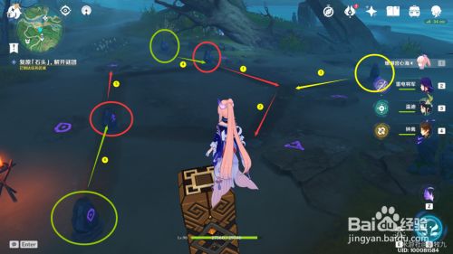 来到一块机关石头旁边,利用雷元素按挨次打石头;