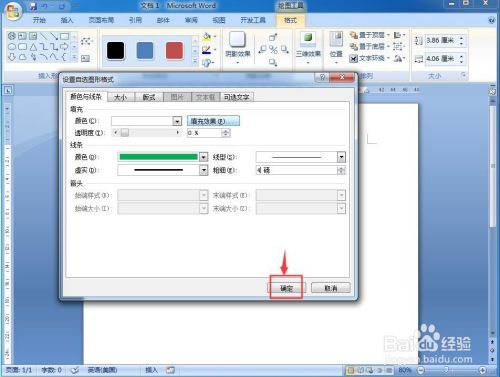 点击右键,选择设置自选图形格局,将线条颜色设为绿色,将线条粗细设为4磅,然后按确定;