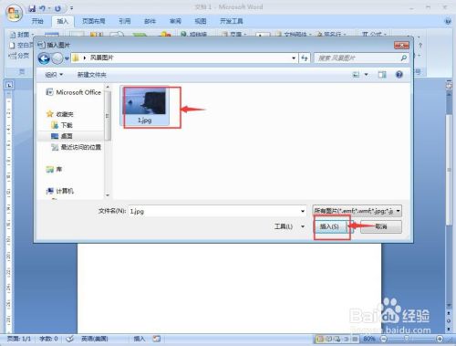 2、选中备好的图片文件,按插入,将图片插入到word中;