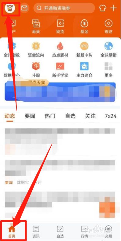 第三步、进入界面后,点击左下方的首页,然后点击左上方的头像