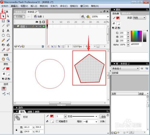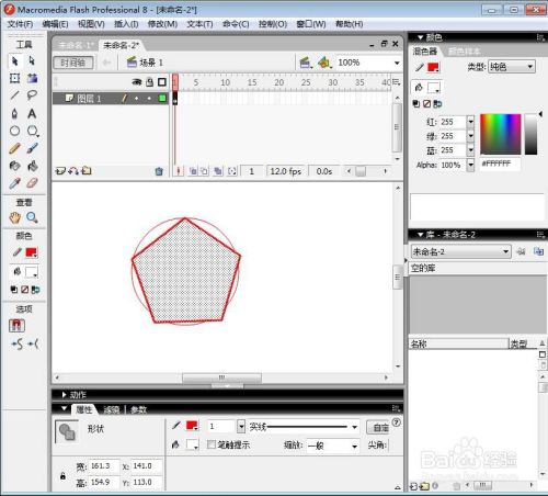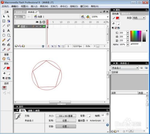 调整好五边形的大小,让它正好与圆形相切,我们就在flash中绘制好了一个带外接圆形的五边形。