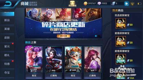 在商城界面可以看到各类英雄和皮肤还有此外热卖商品。