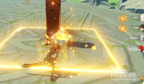 利用大剑脚色或者岩系脚色打坏柱子。
