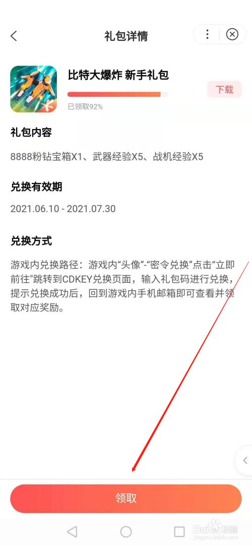步调四、进入‘礼包详情’页面后,里面有具体的礼包内容,兑换体例等信息,领取后到游戏里兑换即可,如下图所示: