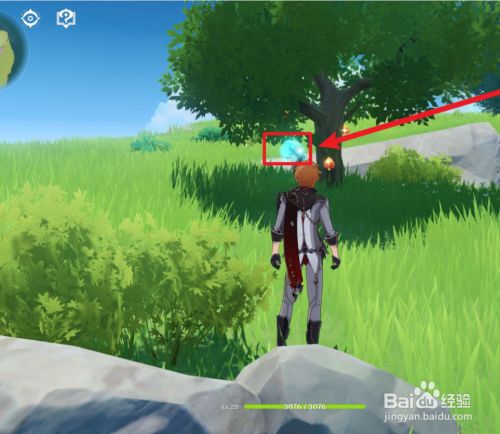 然后我们找到第一只仙灵,它是在绝壁树的旁边,我们接近仙灵,然后仙灵就会跑到仙灵灯里面。