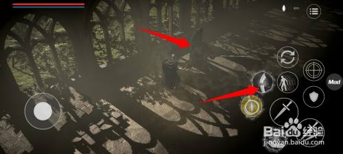 拖动左下角的轮盘,节制人物移动到木桩处调查获得第一个道具:石像头颅。