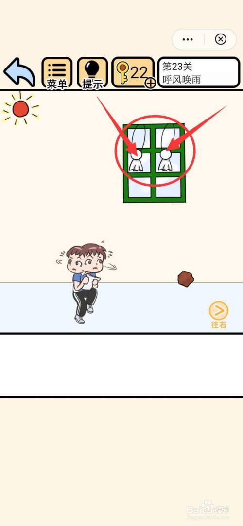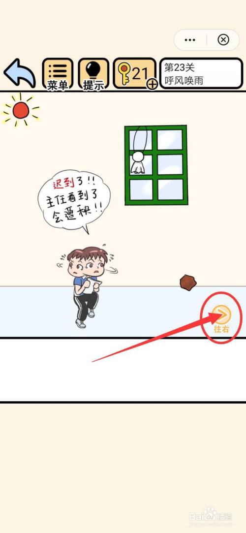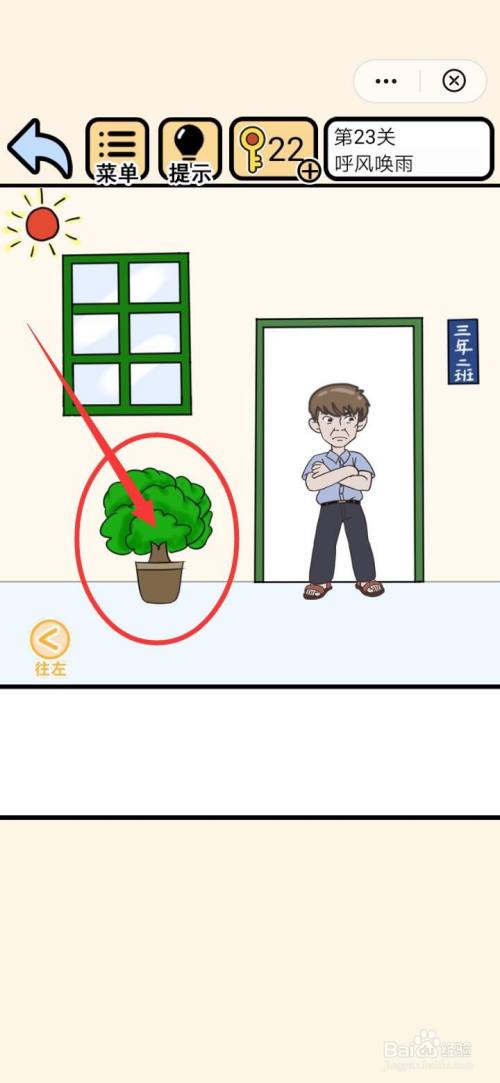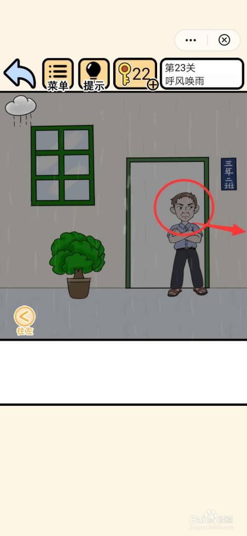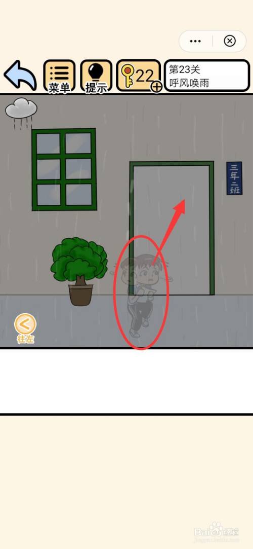 工具/原料华为荣耀 play3EMUI9.1.1我不要挂科1.0.0方式/步骤1在关卡列表中点击我不要挂科23呼风唤雨,进入本家儿界面后,点击右下角按钮转换场景2点击我不要挂科23呼风唤雨地上的盆栽,发现一个纸团,放到框里,回到原页面3把我不要挂科23呼风唤雨的纸团交给本家儿人公,让它酿成一个好天娃娃4把我不要挂科23呼风唤雨的好天娃娃挂到窗口上,用手点击两个好天娃娃5发现我不要挂科23呼风唤雨的好天娃娃酿成雨天娃娃,转换场景看见风在吹班本家儿任的头发6看到我不要挂科23呼风唤雨班本家儿任的假发被风吹走,趁他去捡的时辰,快进门去吧7当作功进入我不要挂科23呼风唤雨的教室门啦,但愿以上过关步调能帮您顺遂过关END