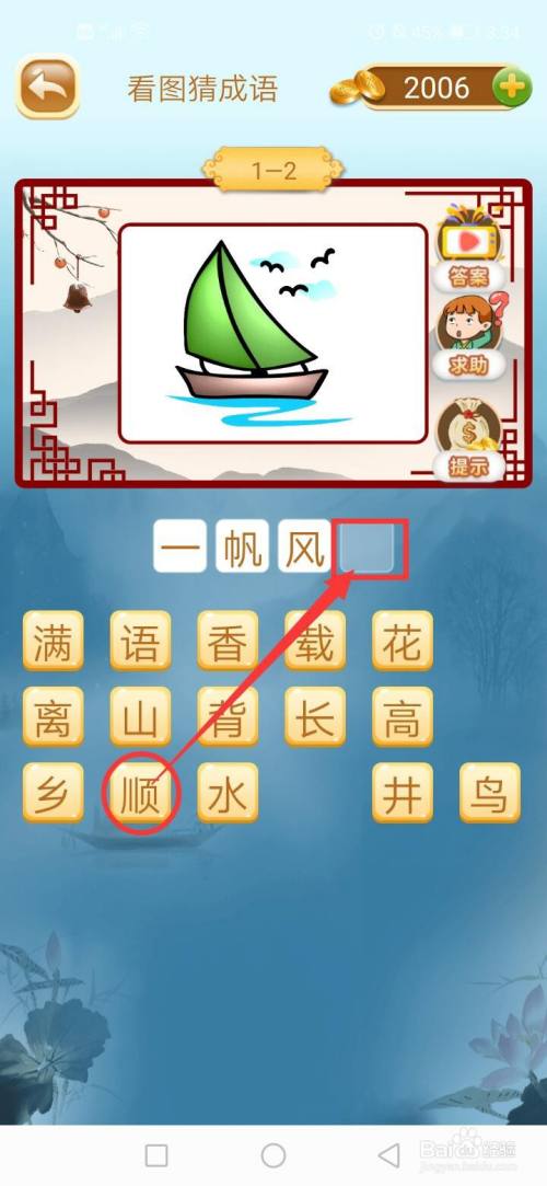 最后点击下面的顺字,放到当作语猜猜猜之看图猜当作语1-2剩下的方框里即可