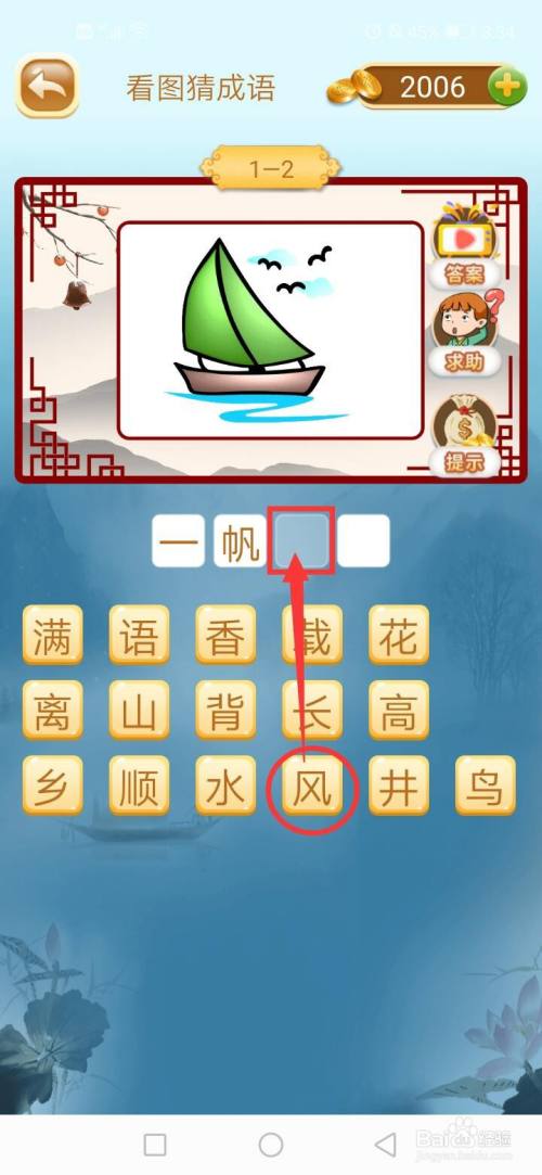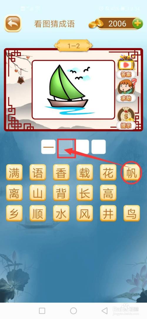 点击晋升思维 当作语猜猜猜之看图猜当作语1-2下面的帆字,放到第二个方框中