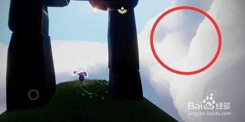 从遇镜进入到雨林,进入雨林今后往前走来到山崖的小石门,往如图所示的右上方飞。