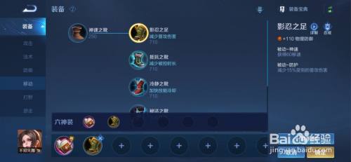 鞋子在正常声势下出“影忍之足”,加110的物理防御和60的移速,被动还能削减15%的普攻。