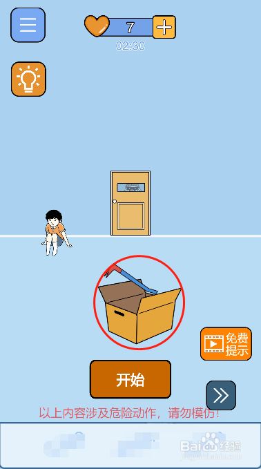 工具/原料vivoS安卓3方式/步骤1首先打开房间地上的纸盒子2然后拿到盒子里面的撬棍以及纸盒子3接着切换到左边的场景操纵撬棍撬开图示的位置4之后点击让小男孩躲进茅厕里面5然后用纸盒子对陷阱进行伪装6最后点击起头按钮推进剧情即可END