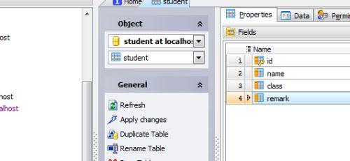 5、此时显示已有字段