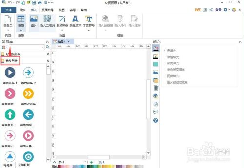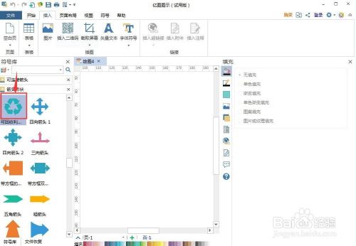 2、进入箭头外形符号库中,找到并双击可收受接管操纵箭头;