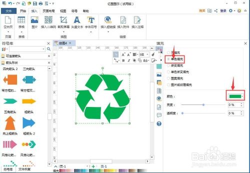我们就在亿图图示中建立好了一个绿色可收受接管操纵箭头。