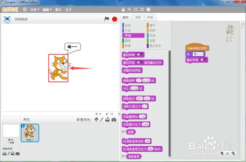 点击声音面板,添加播放声音喵号令;