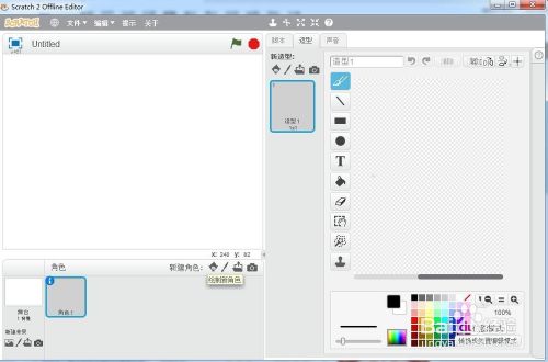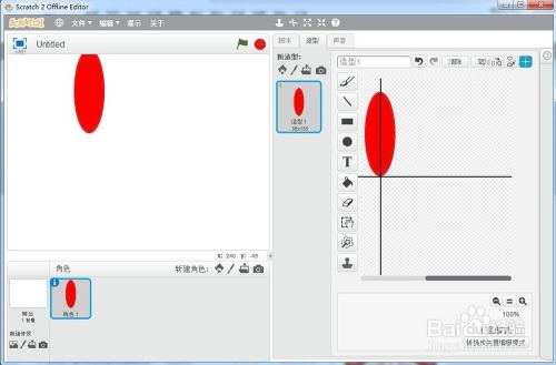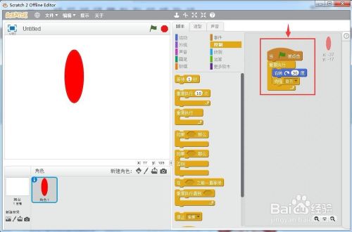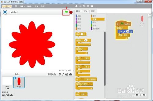 点击绿旗执行程序,我们就在scratch中画出了一朵红花。