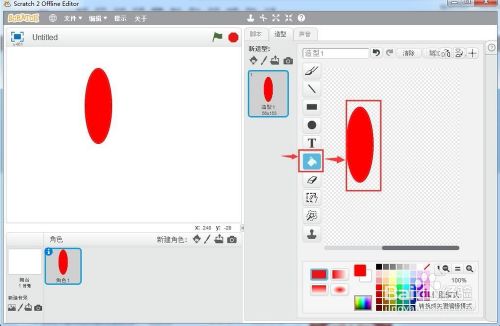 点击椭圆东西,界说好颜色,将颜色设置为红色;