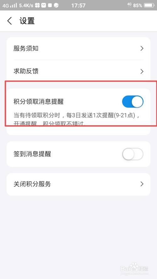 把【积分领打消息提醒】后面的按钮点亮即可。