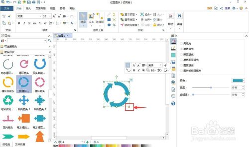 4、调整三段轮回箭头的大小和填充颜色。