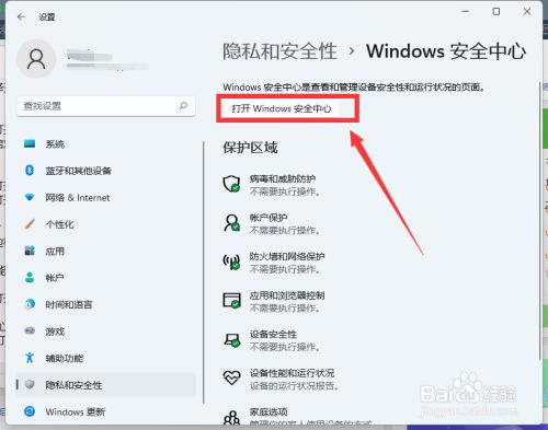 点击打开windows平安中间。