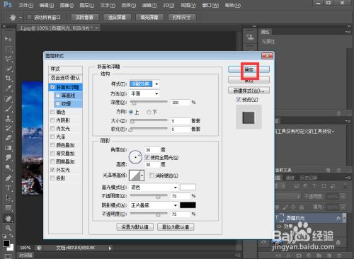 点击图层,选择图层样式下的斜面和浮雕;