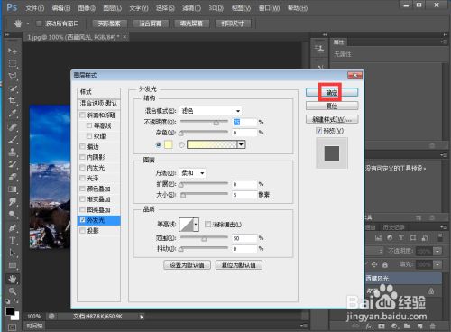 点击图层,选择图层样式下的外发光;