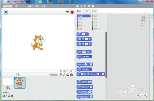 打开scratch2.0软件,进入它的编纂界面;