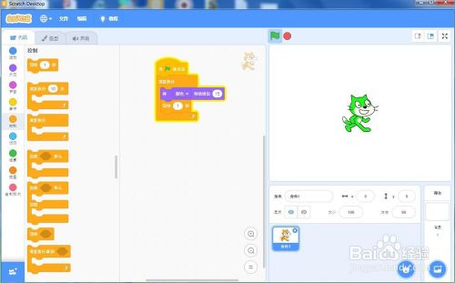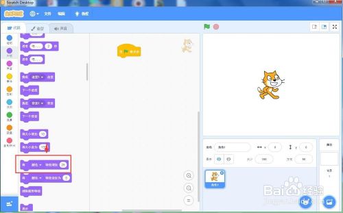将它拉到当绿旗被点击的下面,将数值改为15;