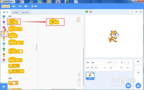 点击事务面板,添加当绿旗被点击号令;