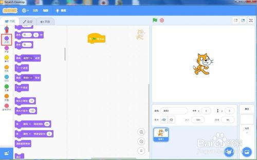 打开scratch3.0,进入其本家儿界面中;